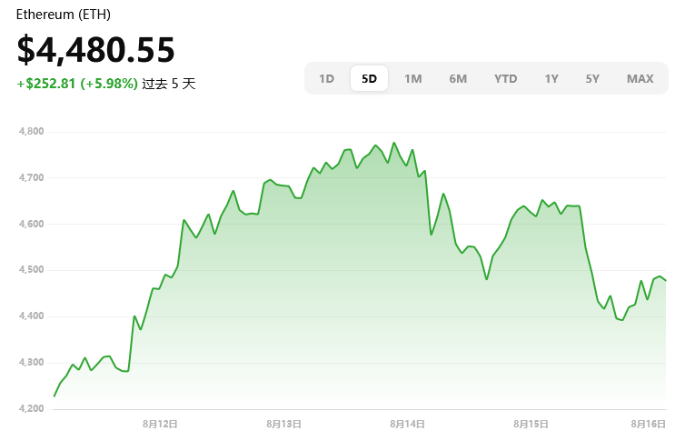 目前 ETH 报价约 $4,480.55,单日跌幅约 3.0%。高点曾达到 $4,663,低点约 $4,379。
