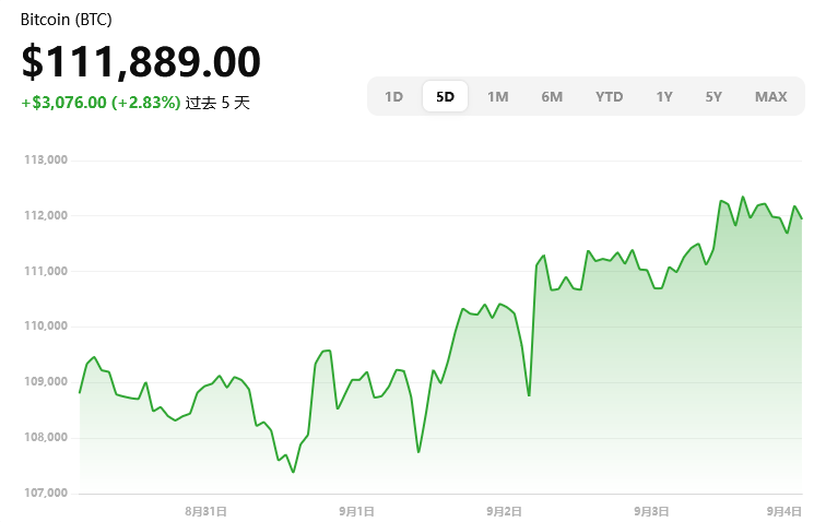 行情概览:比特币当前价格约 $111,889,日内上涨约 0.87%,盘中震荡在 $110,566–$112,519 区间 Barron's CoinDesk CoinCentral。