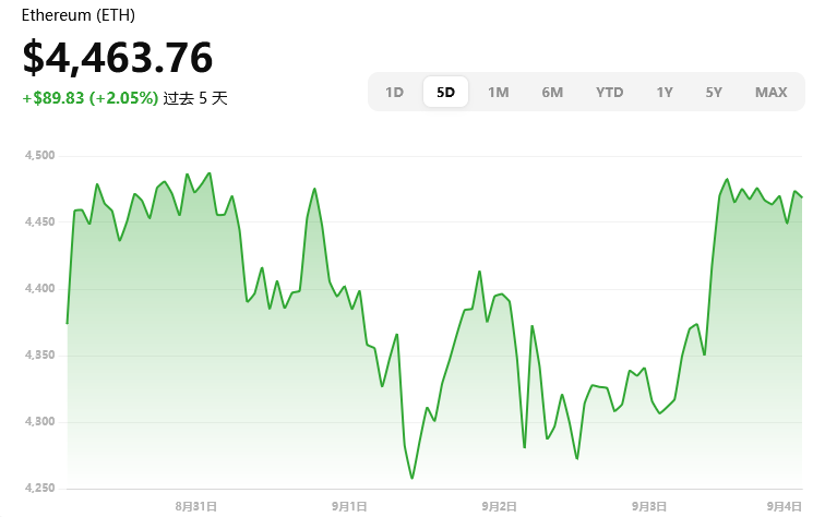 行情概览:以太坊目前价格约 $4,464,日内上涨约 4.1%,波幅落在 $4,286–$4,487 之间 Indiatimes 澳大利亚人 changelly.com Coin Edition CoinDCX。