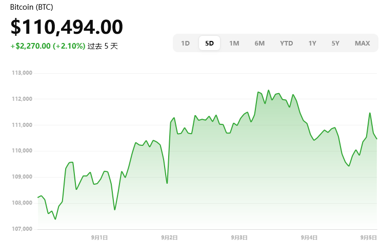 当前行情:比特币回调至约 $110,494,日内跌幅约 1.4%,日内波动在 $109,378–$112,072 区间 。